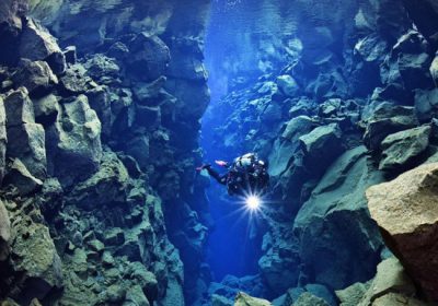 加拿大潜水教练斯科特·菲茨西蒙斯(Scott Fitzsimmons)在位于冰岛海岸、拥有清澈剔透水域的史费拉(Silfra)潜游,并拍照记录。照片中,他一手放在欧洲的岩石上,另一…
