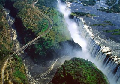 维多利亚瀑布,又称莫西奥图尼亚瀑布,位于非洲赞比西河中游,赞比亚与津巴布韦接壤处。宽1700多米(5,500多英尺),最高处108米(355英尺),瀑布奔入玄武岩峡谷,水雾形成的彩…